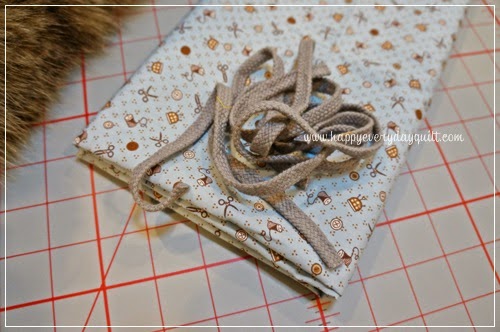 แล้วก็กะตำแหน่งที่เราจะใส่เชือกค่ะ กลัดเข็มหมุดให้เรียบร้อย